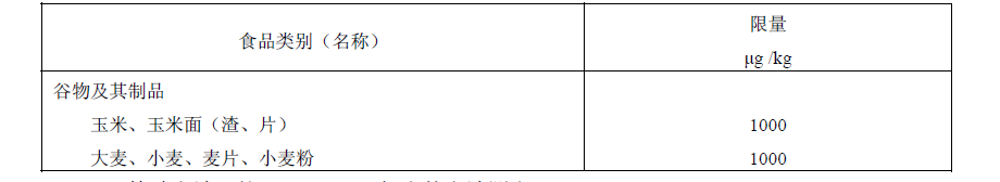 表1食品中脫氧雪腐鐮刀菌烯醇限量指標(biāo)