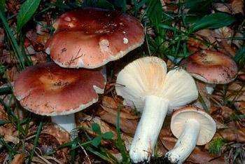 中毒類型屬于橫紋肌溶解型。菌蓋表面淺灰色至煤灰黑色,菌蓋直徑6-12cm,成熟后中部下凹呈漏斗狀。菌柄粗短,一般5-9cm,淺灰色,內(nèi)部松軟。菌褶白色,受傷后易變紅色。菌肉白色,受傷后易變紅色而不再變黑色。劇毒,近年來在貴州省常有發(fā)生中毒事件,病死率極高。該菌與老百姓經(jīng)常采食的紅菇屬中的其它種類如稀褶紅菇、密褶紅菇極為相似,老百姓都稱為火炭菌,很難從外觀形態(tài)上將他們區(qū)分開來。多在進(jìn)食毒蘑菇15分鐘至2小時發(fā)病,初出現(xiàn)惡心、嘔吐、腹瀉、腹痛等胃腸道癥狀,6-12小時后出現(xiàn)出血尿或血紅蛋白尿、肌肉痙攣性疼痛、肌酸激酶急劇增加等橫紋肌溶解的癥狀,最后出現(xiàn)急性腎功能衰竭,甚至死亡。