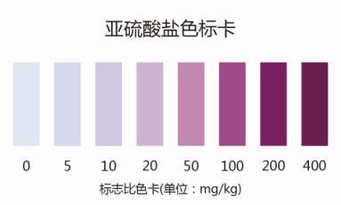2.1:2分鐘后觀察檢測管中顏色的深淺,紫紅色顏色越深,表示樣品中亞硫酸鹽的含量越高。
