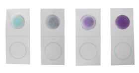 1.2:將潔凈度速測卡圓型藥片向上平放在臺面上。滴1滴檢測試劑B到圓型藥片上,如果物體表面較臟的話,1 min內(nèi)藥片就會變?yōu)樽仙?,即可判定被檢物體不潔凈,否則需要等待10min與標(biāo)準(zhǔn)比色板進(jìn)行比較確定結(jié)果。