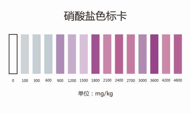 2.1:2分鐘后觀察檢測管中顏色的深淺,紫紅色顏色越深,表示樣品中硝酸鹽的含量越高;