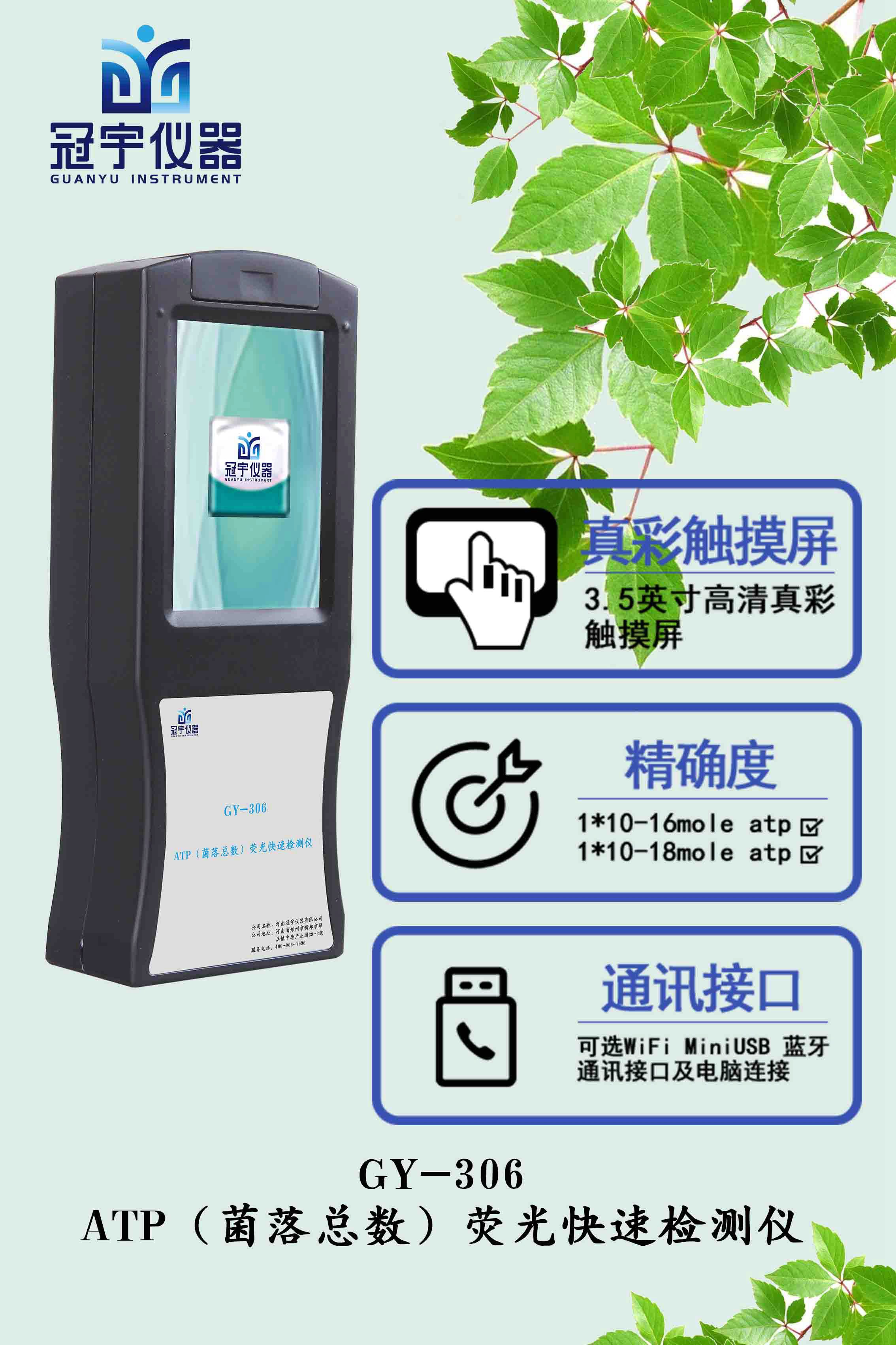GY-306ATP熒光檢測儀是河南冠宇儀器最新研制的分析測試儀器,冠宇儀器的科研技術(shù)人員通過自主研發(fā)基于螢火蟲發(fā)光原理,利用“熒光素酶—熒光素體系”快速檢測三磷酸腺苷(ATP)。由于所有生物活細(xì)胞中含有恒量的ATP,所以ATP含量可以清晰地表明樣品中微生物與其他生物殘余的多少,用于判斷環(huán)境、器皿、物品、食品當(dāng)中的微生物數(shù)量,來判斷檢測樣品的衛(wèi)生情況。