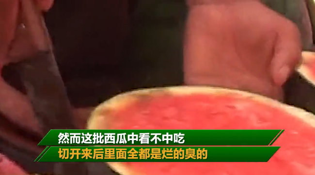 西瓜中看不中吃,挨個(gè)切開(kāi)西瓜看個(gè)究竟,發(fā)現(xiàn)西瓜里邊已經(jīng)承纖絮狀,并且伴隨的還有腐臭的味道。