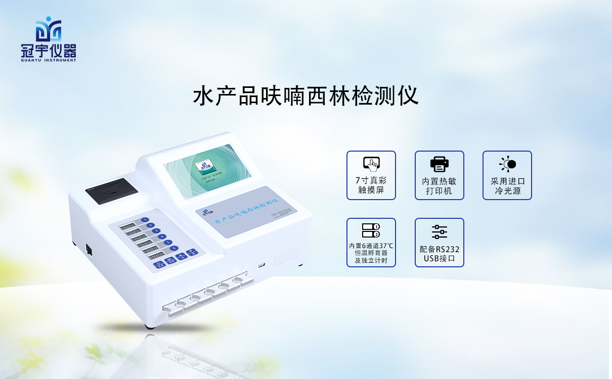 河南冠宇儀器有限公司專業(yè)生產(chǎn)呋喃西林檢測(cè)儀應(yīng)用競(jìng)爭(zhēng)抑制免疫層析的原理,通過(guò)檢測(cè)線熒光定量卡中的熒光強(qiáng)弱程度,定量分析待檢樣品中呋喃西林殘留含量。適用于水產(chǎn)監(jiān)測(cè)中心、水產(chǎn)飼料生產(chǎn)加工、水產(chǎn)食品加工貿(mào)易、水產(chǎn)養(yǎng)殖戶自查、工商質(zhì)監(jiān)部門用于市場(chǎng)快速篩查等。