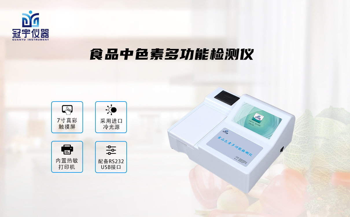5、食品色素多功能檢測(cè)儀GY-DS1006食能夠快速檢測(cè)蘇丹紅,靛藍(lán),亮藍(lán),檸檬黃,日落黃,胭脂紅,莧菜紅,誘惑紅,羅丹明B等色素含量。適用于食品監(jiān)測(cè)中心、食品加工貿(mào)易、水果經(jīng)銷(xiāo)貿(mào)易商自查、工商質(zhì)監(jiān)部門(mén)用于市場(chǎng)快速篩查等。