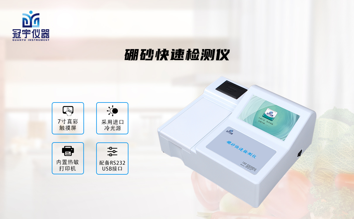 4.冠宇儀器硼砂檢測(cè)儀GY-1056能夠快速檢測(cè)面條、腐竹、米粉、涼粉、涼皮、面條、餃子皮、餛飩、粽子、肉丸、涼皮、肉制品、乳與乳制品、醬油、人造奶油、葡萄酒等食品中的硼砂含量。