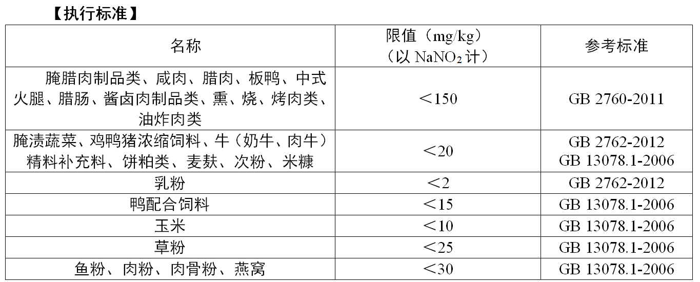 不同的食品中,亞硝酸鹽作為食品添加劑的限量從幾毫克到幾十毫克每公斤不等。下圖是亞硝酸鹽在食品中應(yīng)用的范圍和限量: