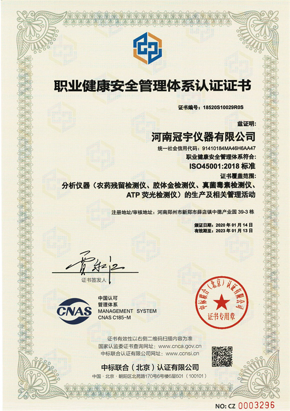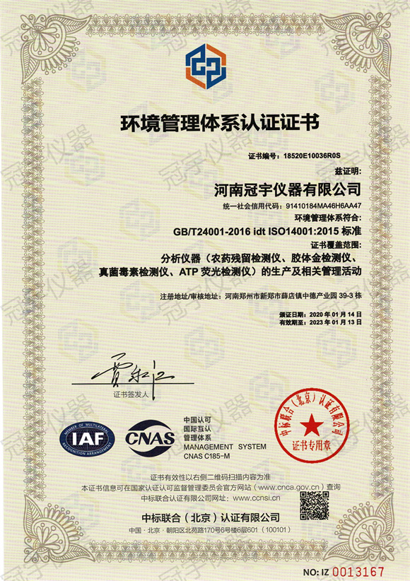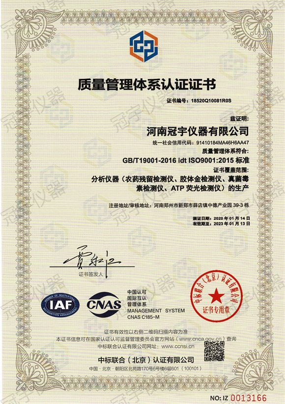 河南冠宇儀器有限公司(以下簡稱:冠宇儀器)繼之前的多項軟件著作權(quán)證書及專利證書之后,也獲得了ISO三體認證。