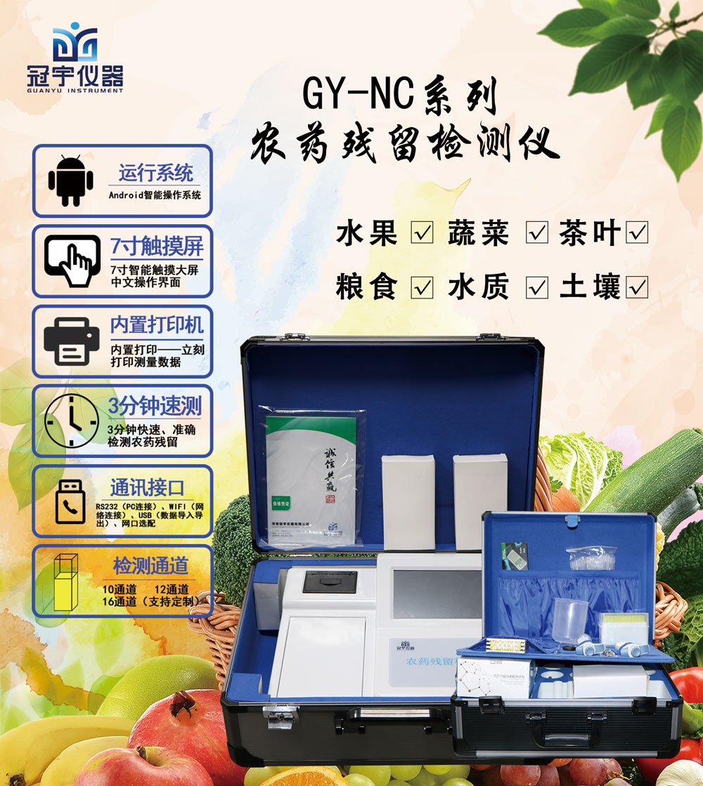 所以相應(yīng)的監(jiān)管部門以及蔬菜批發(fā)市場等食品商業(yè)鏈中端的單位應(yīng)加強食用菌的農(nóng)藥殘留超標(biāo)問題的檢控篩查工作,杜絕超標(biāo)食用菌。冠宇儀器農(nóng)藥殘留檢測儀能準(zhǔn)確、快速檢測出蔬菜、水果、糧食、茶葉以及土壤中有機磷和氨基甲酸脂類農(nóng)藥殘留的快速檢測。可廣泛應(yīng)用于各級政府蔬菜檢測中心、農(nóng)貿(mào)市場、超市、環(huán)保機構(gòu)、蔬菜種植基地、飯店、車載及實驗室等食品安全檢測與監(jiān)控場所等單位對果蔬中農(nóng)藥殘留的檢測。