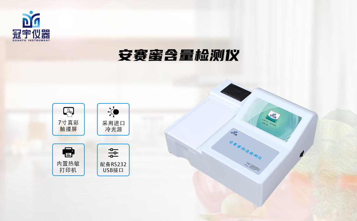 4.綜上預(yù)防措施中,都需要一款專用的檢測儀器來檢控食品生產(chǎn)中及成品食品的安賽蜜含量,來具體判定是否超標(biāo),用以避免過量攝入。冠宇儀器安賽蜜含量檢測儀GY-SASM10能夠快速檢測蜜餞、果醬、糖果、面包糕點(diǎn)、飲料等中的安賽蜜含量。