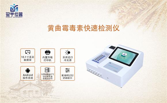 冠宇儀器黃曲霉毒素快速測試儀能夠快速定量檢測玉米、小麥、大米、大麥、小米和燕麥等谷物、飼料、面粉、食用油、調(diào)味品、乳及乳制品等中黃曲霉毒素B1、黃曲霉毒素M1的含量,適用于糧庫收糧檢測、食品監(jiān)測中心、糧油飼料生產(chǎn)加工、食品加工貿(mào)易、畜禽養(yǎng)殖戶自查、工商質(zhì)監(jiān)部門用于市場快速篩查等。