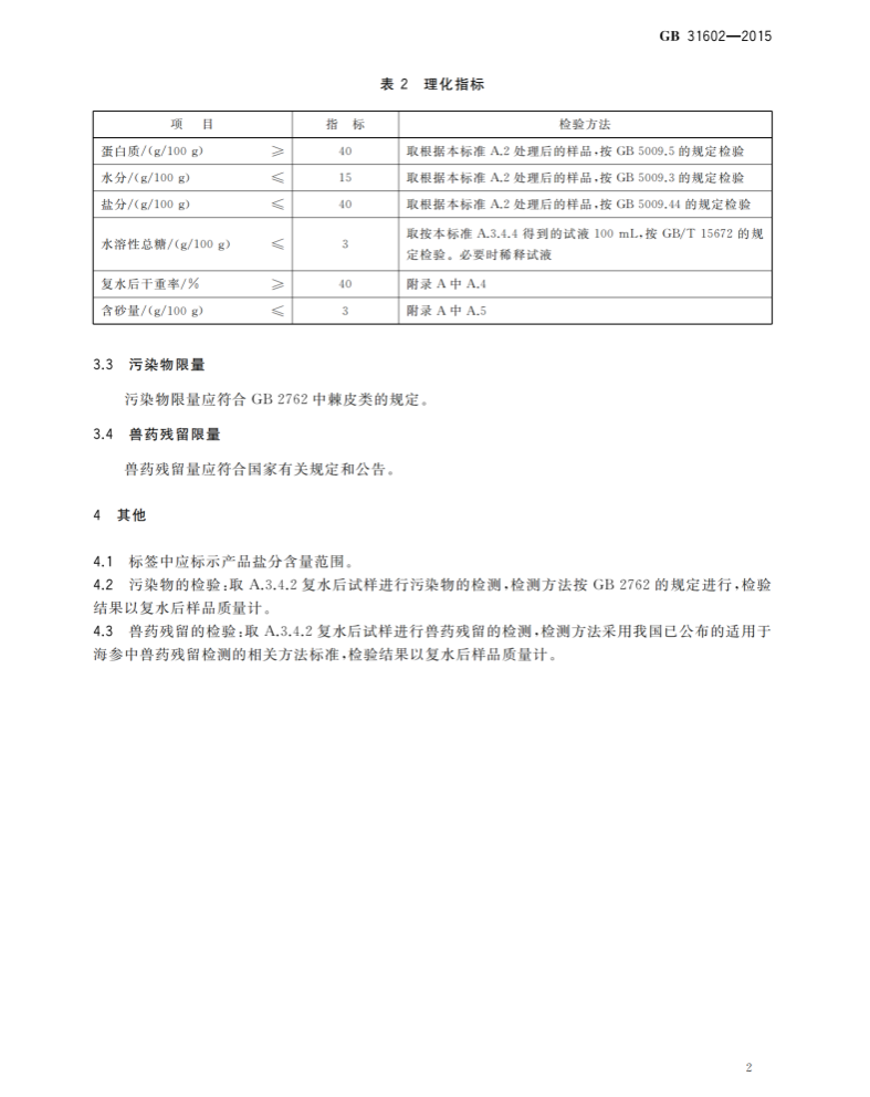 GB 31602-2015 食品安全國家標(biāo)準(zhǔn) 干海參之感官要求及理化指標(biāo)