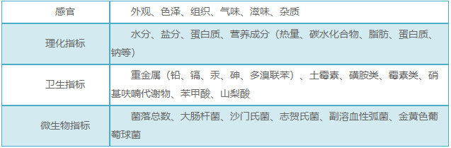 水分、鹽分、蛋白質、營養(yǎng)成分(熱量、碳水化合物、脂肪、蛋白質、鈉等)