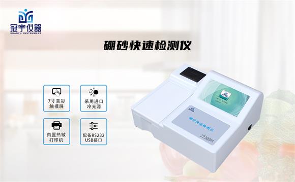 冠宇儀器硼砂快速檢測儀能夠快速檢測面條、腐竹、米粉、涼粉、涼皮、面條、餃子皮、餛飩、粽子、肉丸、涼皮、肉制品、乳與乳制品、醬油、人造奶油、葡萄酒等食品中的硼砂含量。
